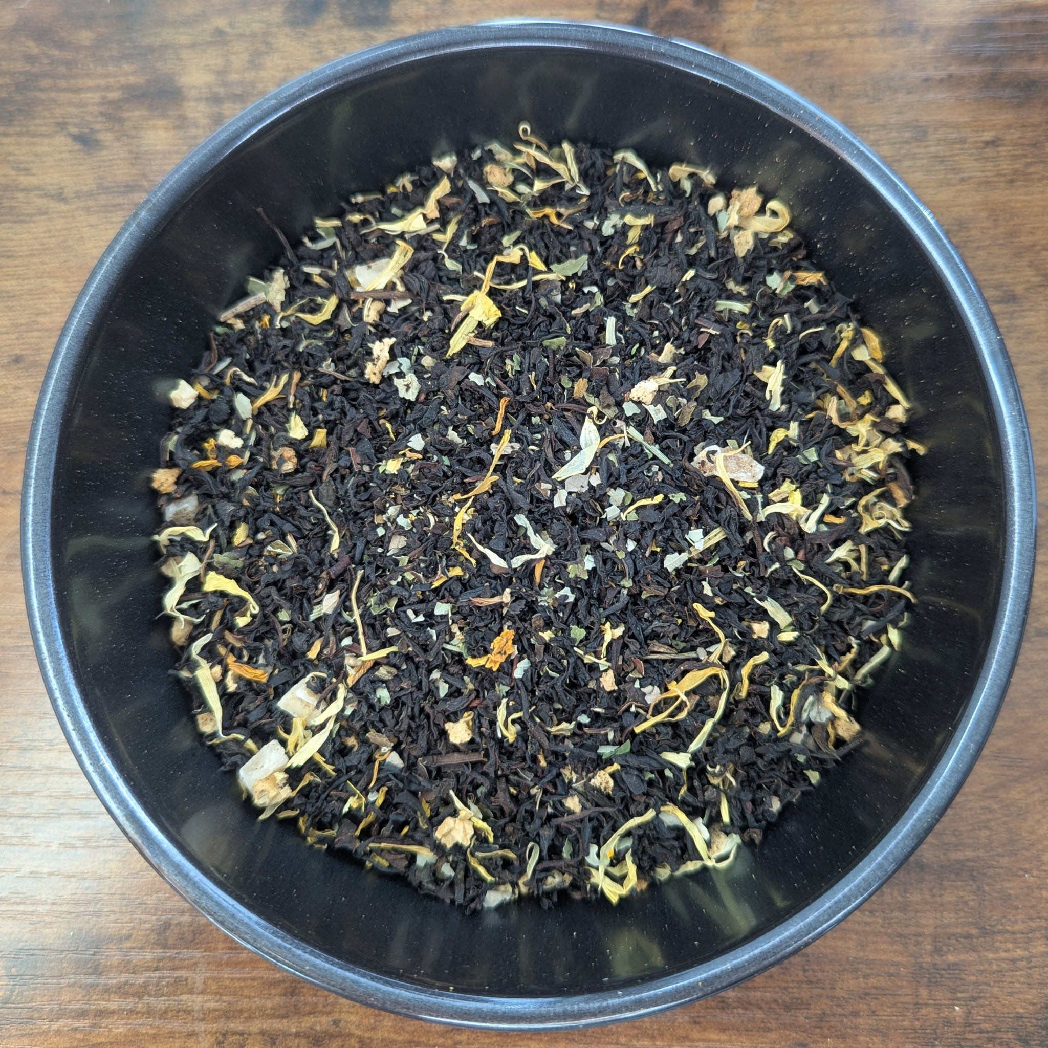 Ingredients: black tea, mango pieces, lime leaves, calendula and sunflower petals, organic natural flavors